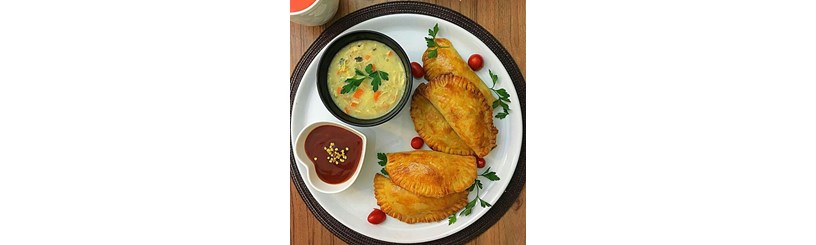 و لبه هاش رو میبندیم و با چنگال روی لبههای خمیر رو کمی فشار میدیم تا فرم بگیره