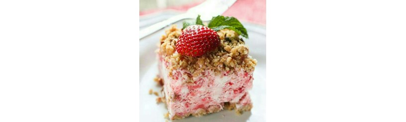 ۷- در یک کاسه دیگر، خامه را بزنید تا فرم بگیرد سپس به مخلوط توت فرنگی اضافه کرده و هم بزنید تا ترکیب شوند.