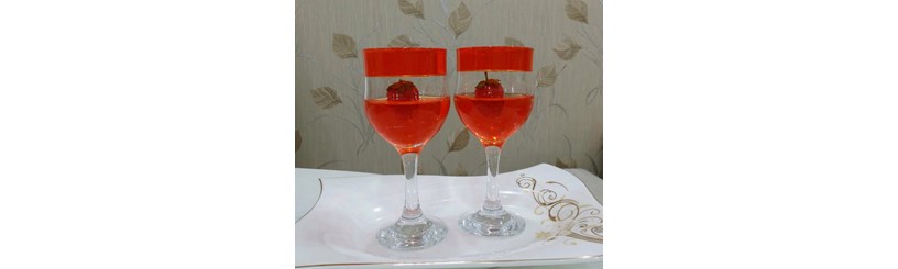 بعد دوباره ژله درست میکنیم و میریزیم روش روی جام رو سلفون میکشیم و جام رو برعکس میکنیم و میزاریم تو یخچال ببنده اینجور وسط جام خالی میمونه