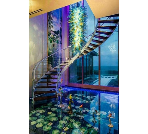 اجرای طرح آبشار و طبیعت برروی راه پله داخل منازل