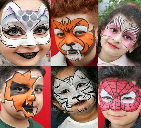 (رنگ نقاشی روی صورت کودکان به شکلهای کارتونی )